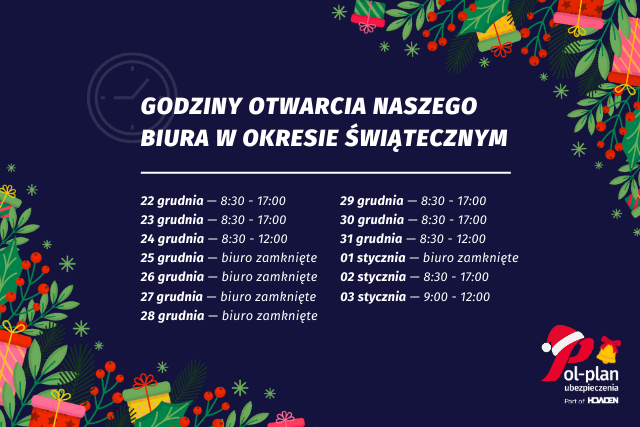 Prosimy o zapoznanie się z godzinami pracy naszego biura w okresie świątecznym.