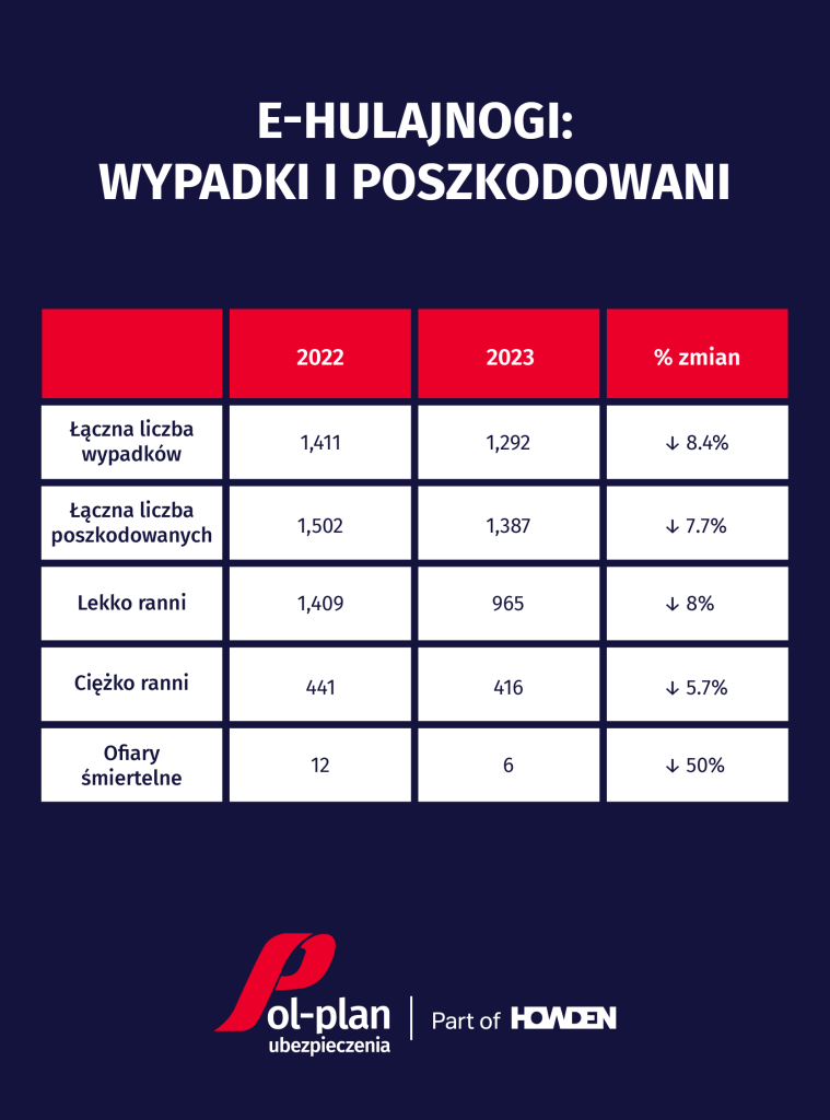 Na szczęście liczba wypadków i ofiar spadła, najprawdopodobniej w wyniku surowszego egzekwowania prawa przez policję, wprowadzenia lepszych zabezpieczeń oraz powrotu do normalności po pandemii (liczby z 2022 roku odzwierciedlały powrót użytkowników dróg po zniesieniu lockdownu, zaś w 2023 roku korzystanie z e-hulajnóg unormowało się, a na drodze było mniej nowicjuszy).